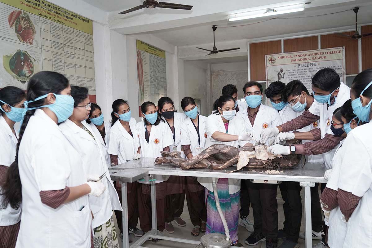 In the course of 1st year BAMS of Rachana Sharir each and every student has to perform complete Dissection of Cadaver in a systematic manner during his part of curriculum.